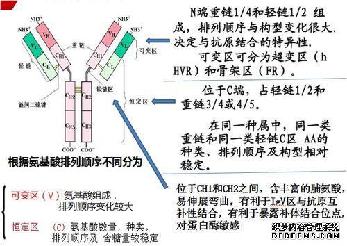 网络II Ig轻链基因的结构和重排Ig重链基因的重排后,轻链可变区基因片段被重排,基因片段V和J并列。 如果先对κ轻链基因进行重排,而对κ基因的重排无效,则发生λ基因重排。 (1)小鼠κ链基因的结构和重排。Vκ基因有大约250个片段,平均距离为10-12 kb。有5个Jκ,其中4个具有功能(只有1个Cκ)。 在人类中,约有85至100个Vκ基因片段,在V区的氨基端编码1至95位氨基酸,包括CDR1,CDR2和部分CDR3。 根据DNA相似程度,Vκ可分为16组。 在种系DNA水平上,Vκ基因片段的长度约为2000 kb,大约相当于人类2号染色体长度的1%。 Jκ基因有五个编码96-108位氨基酸的片段。 Jκ距离Vκ基因最后一个片段的3'端23 kb,但与外显子Cκ接近。 还有一个Cκ编码C区(109-214个氨基酸),并且所有k-κ轻链都具有与C区相同的结构。 人和小鼠Cκ是JK基因的最后两个片段。 5KB Vκ和Cκ之间的重组是随机发生的。 人κ轻链V基因的序列多样性约为100 VK x 5 J k = 500。 (II)表3-4显示了λ链基因的结构和小鼠Igλ轻链基因结构的重排。 大多数近交小鼠具有四个Jλ和四个Cλ,根据种系DNA分布可分为两组:Jλ2Cλ2Jλ4Cλ4(C2-C4组)和Jλ3Cλ3Jλ1Cλ1(C3)-C1组),每组基因片段的长度约为5kb。 表3-4λ链基因的结构和氨基酸分类编码的基因片段的位置编码氨基酸的位置轻链编码的基因片段的位置氨基酸序号L1前导序列的基因片段5'最终基因组-19-5主要肽15质子L2在V基因的5'末端附近。IS1 L1和L2之间的基因V片段V 3'末端V区域97或99-11214或基因J 16C片段基因3'末端C区域113-214102内含子IS1 L1和L2之间93 bp(未编码)IS2J和C 1205 bp(未编码的)λ基因组包含Vλ1,Vλ2和Vλx3的Vλ基因的片段,其中Vλ2距离“ C2-C4基团”的5′端73kb(Jλ2Cλ2Jλ4Cλ4)。从“组C3-C1”起,Vλ1为19 kb(Jλ3Cλ3Jλ1Cλ1)。VλX距离Vλ23'末端19 kb。重因子片段VλyJλ和Cλ基因片段的连接不是完全随机的。Vλ1和Jλ3或J1重排以形成Vλ1Jλ3Cλ3基因或Vλ1Jλ1Cλ1基因,但是Vλ2仅与Jλ2重排以形成Vλ2Jλ2Cλ2基因,Vλ2和Jλ3或Jλ1基因分别为Vλ2Jλ3Cλ1和Vλ Jλ4和Cλ4没有功能。 尚未发现Vλ1和Jλ2被重新组织了。 发现VλX仅在Jλ2处被重组。 在人类中,λ基因存在于22号染色体上,大约有100个Vλs。不同的亚型包含6-9个Cλ,每个Cλ与相应Jλ基因的片段相邻。 λ轻链的转录过程是将Vλ基因片段连接至Jλ片段和外显子Vλ/Jλ,然后与初级mRNA中的相邻Cλ基因片段重组,并通过剪接成熟。,轻链mRNA的翻译和修饰。 图3-11κ小鼠轻链基因重排的序列,转录和合成