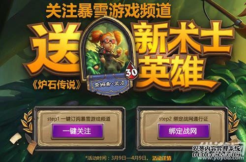 如何获得魔术师的新英雄《炉石传说》鹦鹉螺,获得攻略。 许多玩家想知道是否有新的英雄皮肤巫师Naim Hilling Marsh。 其次,对每个人来说都是个好消息,玩家可以通过参加新的国民服役活动来获得这个新的英雄面具。 让我们看看如何收集新的勇士英雄。 不要被尼姆·希林·马什(Nyme Hilling Marsh)的小男人和他的桃子的味道所迷惑。 隐藏在双马尾辫+眼镜中是一位强大而出色的魔术师。 纳伊米(Naimi)勇敢而强大,总是在压力下保持镇定。 毕竟,一个简单的老人无法控制卑鄙的精力,也不能从扭曲的空虚中召唤出可怕的恶魔。 这将是一个小型,友好且值得信赖的公司,它将成为使用暗能量破坏灵魂的小专家! 介绍如何收集炉石传说,Naim Hilling Marsh:3月9日至4月9日,炉石传说正式宣布了如何获得新的魔术师英雄[Naimushi]。在直播平台上订阅(或关注)“暴雪游戏频道”,加入Battle.net Pass,并将此新的术士英雄免费添加到您的收藏中! 活动时间:2018年3月9日至4月9日活动规则:您可以在Betta,Panda或Netease CC的实时流媒体平台上参加此活动。要使用Battle.net帐户,您必须注册暴雪游戏频道。实时平台帐户的链接。您的Battle.net帐户必须使用“炉石传说”游戏至少登录一次。每个Battle.net帐户只能链接到一个实时平台帐户,不能重复链接。奖励将被授予:奖励将在成功关联帐户后2周内直接引入游戏中。 如果您很长时间没有收到奖励,请在2018年5月9日之前与客户服务联系以解决问题。