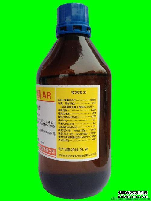 商品详细 化学性质二甲苯是一种透明的无色液体,不溶于水,但溶于乙醇。 有毒的 广泛用于有机溶剂,合成药物,涂料,树脂,染料和农药。 存在三种异构体,它们是C8芳烃的主要成分。它们可用作高辛烷值汽油的组分和溶剂。它也是有机化学品的重要原料。关键字:二甲苯AR 商业联盟公司南京圣昌化工有限公司为您提供 您可以直接从“ Xylene AR”联系公司,以获取详细的产品价格,产品图片等。 当您联系商业联盟网络时,请提供有关“二甲苯AR”的具体信息。