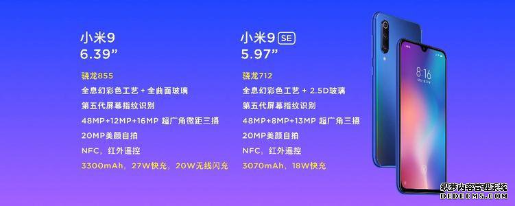 [?小米9和小米9se有什么区别?]2019年2月20日,旗舰级小米9机正式发布,融合了所有小米能源的硬件和软件技术。 新闻发布会上最让人惊讶的是,小米还带来了小米9se旗舰屏幕,因此喜欢小屏幕的人还有更多选择。 其次,每个人都可以介绍小米9和小米9se在硬件配置,外观,照片和其他方面的区别。 小米9和小米9se有什么区别?在硬件配置上,小米9配备了超大设计,三个大,四个小核以及一个旗舰Qualcomm Snapdragon 855 7 nm处理器,最大频率为2。 小米官方表示,在84 GHz频率下,小米9游戏的速度比小龙845快20%,运行速度快45%,并且AI能力是小龙845的三倍。 在GPU方面,它也已更新为Adreno640,可将图形渲染速度提高20%。 小米9se拥有全球首个高通小龙712处理器,采用10纳米工艺,最大频率为2。 小米正式表示,在3 GHz时,Ann Bunny的载波被分为187626点。 屏幕质量的差异在于小米9的正面是基于6个。 三星AMOLED 39英寸下拉屏幕具有3个下巴控件。 与小米8、6毫米相比,减少40%,屏幕显示率为90。 7% 屏幕范围已达到103。 NTSC颜色范围为8%,最大亮度为600尼特。 使用了五个小米9。 97英寸三星AMOLED下拉屏幕的屏幕比例是90。 47%的屏幕质量的其他方面与小米9相同,但区别在于尺寸较小。 拍摄小米9和小米9se和拍摄照片有什么区别?小米9使用4800万像素主相机+ 1200万像素人像镜头+ 1600万像素超广角相机安装在背面。 4800万个主摄像机可使用f / 1 Sony IMX586传感器工作。 75盛大开业,1。 6 m的大像素,单个像素的感光面积是原始像素的4倍,分辨率更强大。一个12百万像素的人像镜头使用f / 2。 两个开口。f / 2超广角16百万像素相机。 2个开口和117个超广角。 小米9使用4800万像素的主摄像头+ 8百万像素的长焦镜头+ 1300万像素的超广角镜头,主摄像头与小米9相同,但其他两个相机与小米9不同两种相机功能之间的差异不是很大 两款前置摄像头均使用20万像素镜头,并支持AI微成型,AI肖像模式和AI视频美感。 有关电池寿命差异的其他详细信息,小米9电池容量为3300 mAh,小屏幕小米9se为3070 mAh。小米9支持27 W快速电缆充电和20 W无线快速充电,而小米9仅支持18 W快速充电。 两者均支持NFC多功能,红外遥控器和第五代屏幕指纹识别技术。 正常的小米9版本6GBRAM + 128GBROM小米9的价格是2999元。配备8GBRAM + 128GBROM的小米9售价为3299元。 小米9se6GBRAM + 64GBROM价格为1999元,6GBRAM + 128GBROM价格为2299元。 以上是对小米9和小米9se之间差异的介绍。有关小米9和小米9se的更多信息,请访问Pacific Internet IT Encyclopedia Channel。